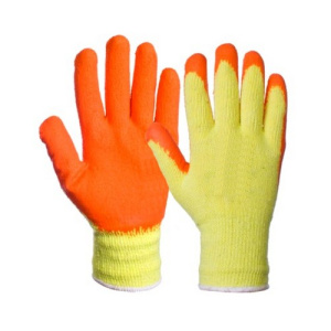 Перчатки ЖЕЛТЫЕ х/б 2-й вязки С ОРАНЖЕВЫМ вспененным покрыт.на ладони,10кл.вязки р-р10 КИТАЙ (240)