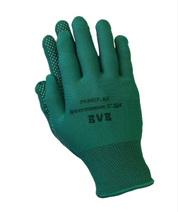 Перчатки из полиэстра с ПВХ точкой, 13 класс вязки,р-р 8.5 ЗЕЛЕНЫЕ КИТАЙ (1200)