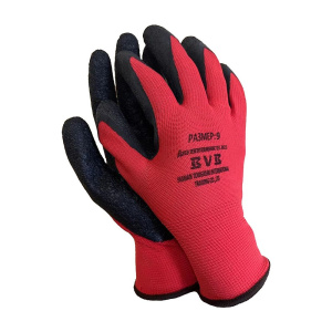 —Перчатки из красного полиэстра с вспенен.черным покрыт. на ладони,13класс вязки р-р 9 (240)